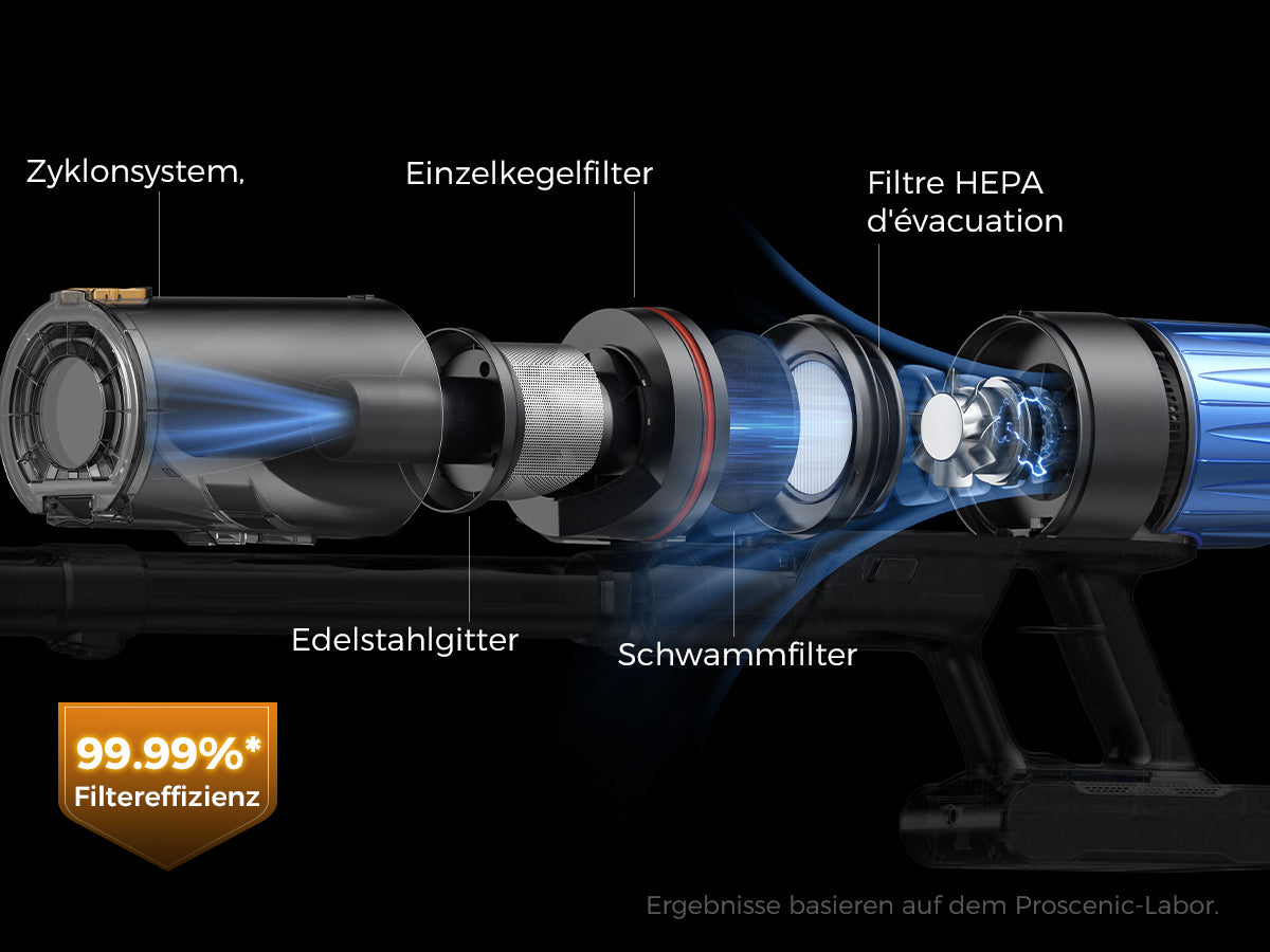 Capture 99,99 % des poussières, allergènes et particules fines, garantissant un air plus pur.