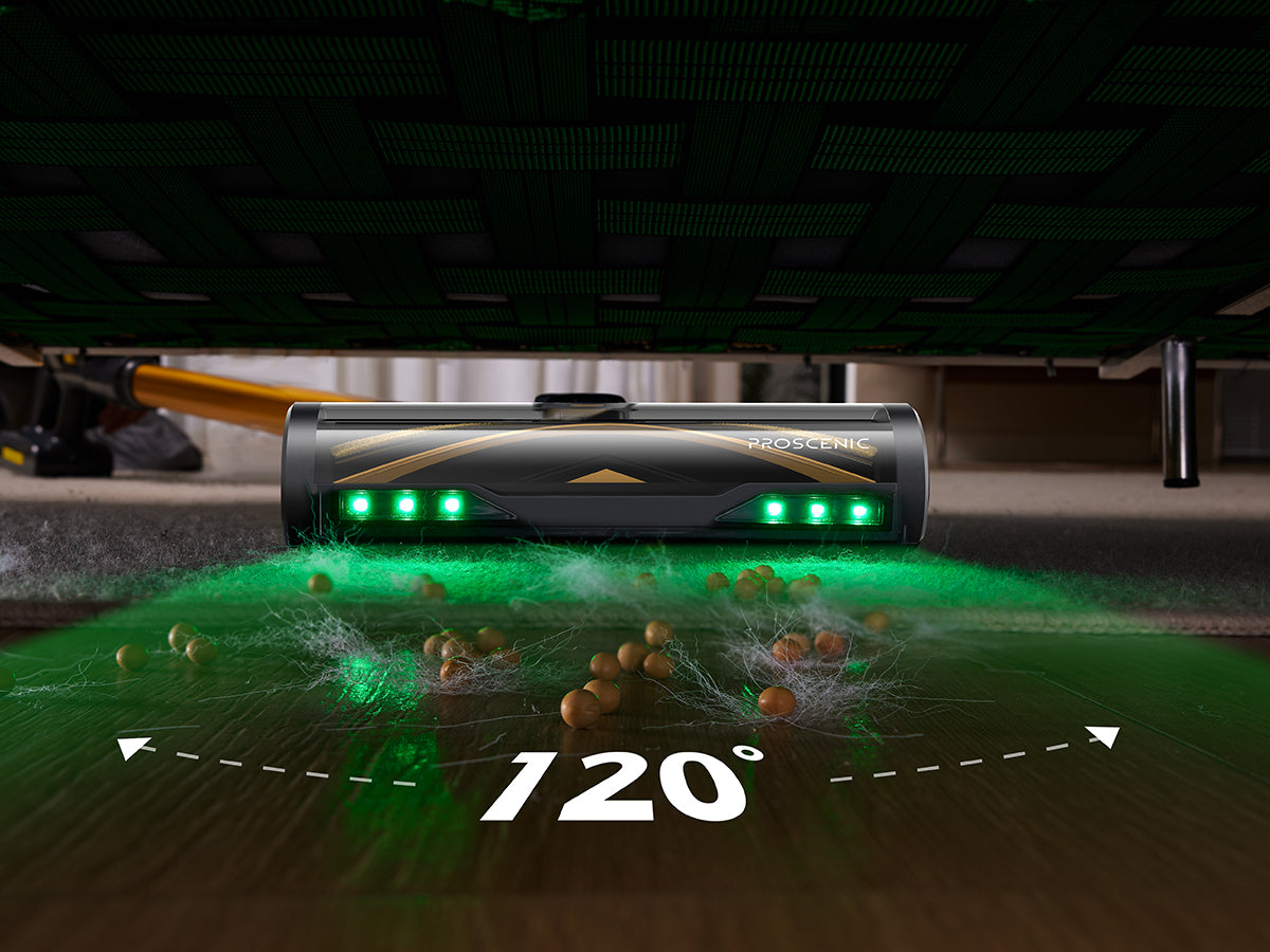 Éclaire même les particules de poussière les plus fines, vous aidant à nettoyer à fond dans les zones sombres et difficiles d’accès.