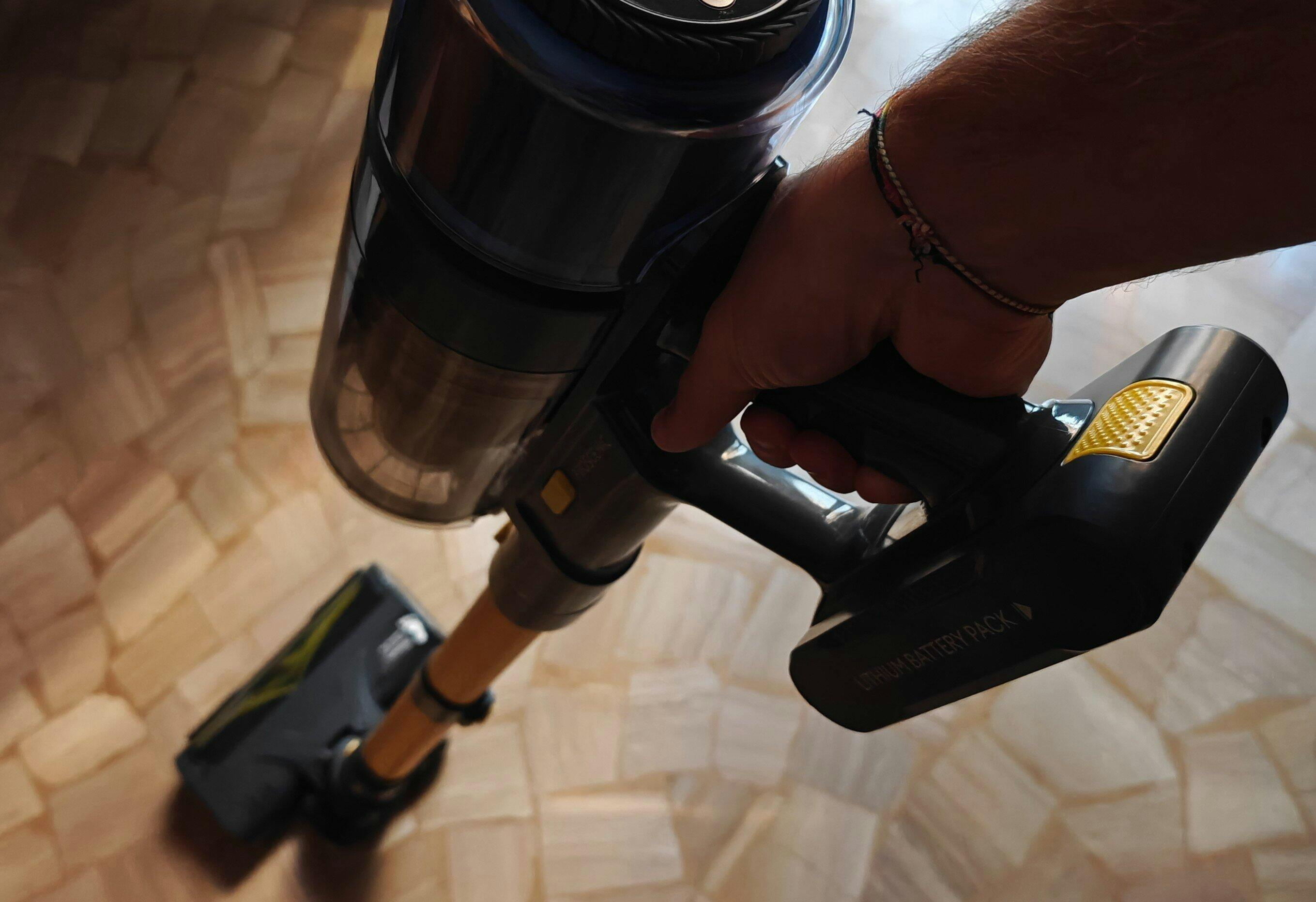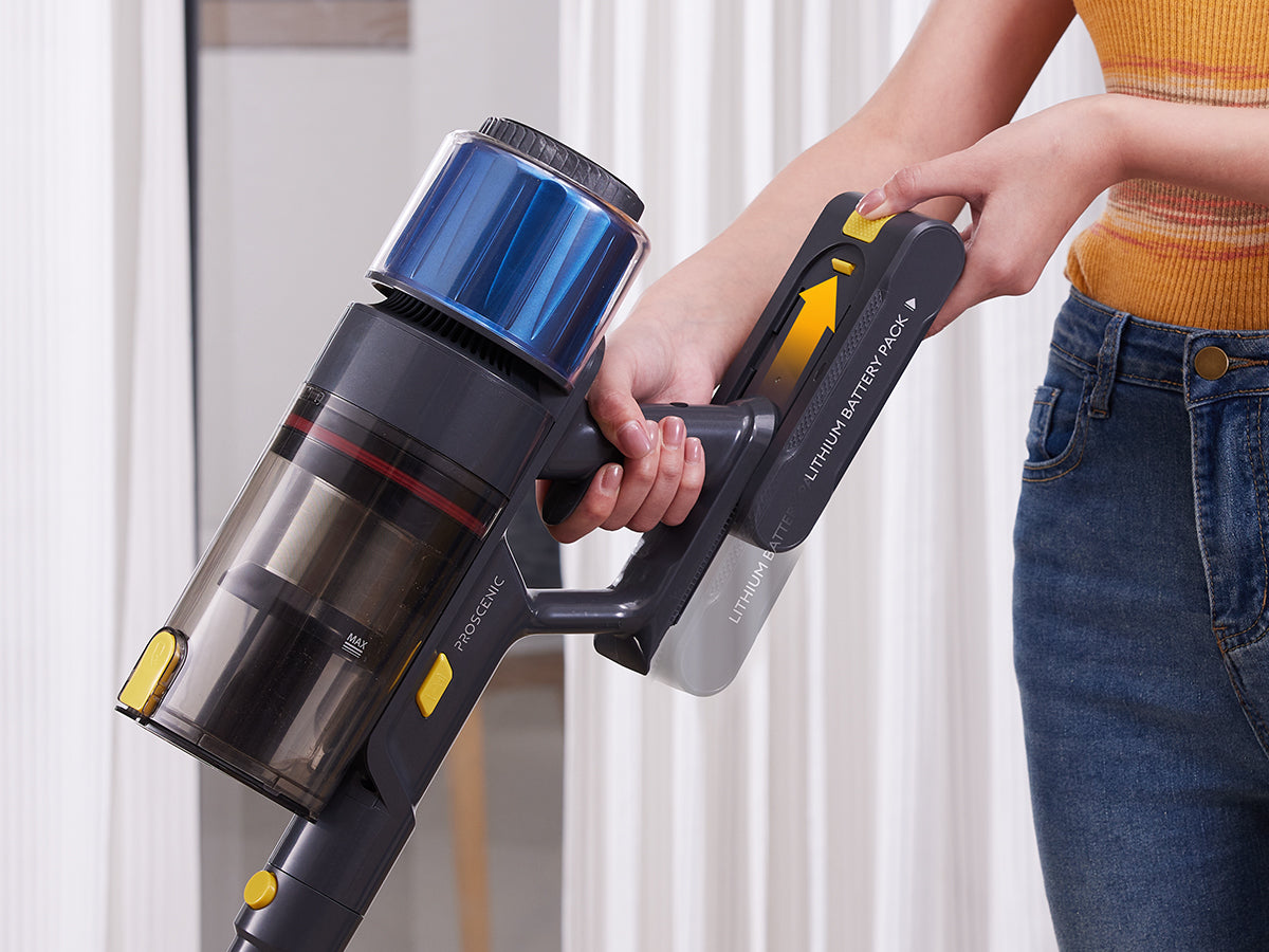 L’aspirateur sans fil P15 peut tenir debout tout seul, vous permettant de faire une pause sans avoir à le poser contre un mur.