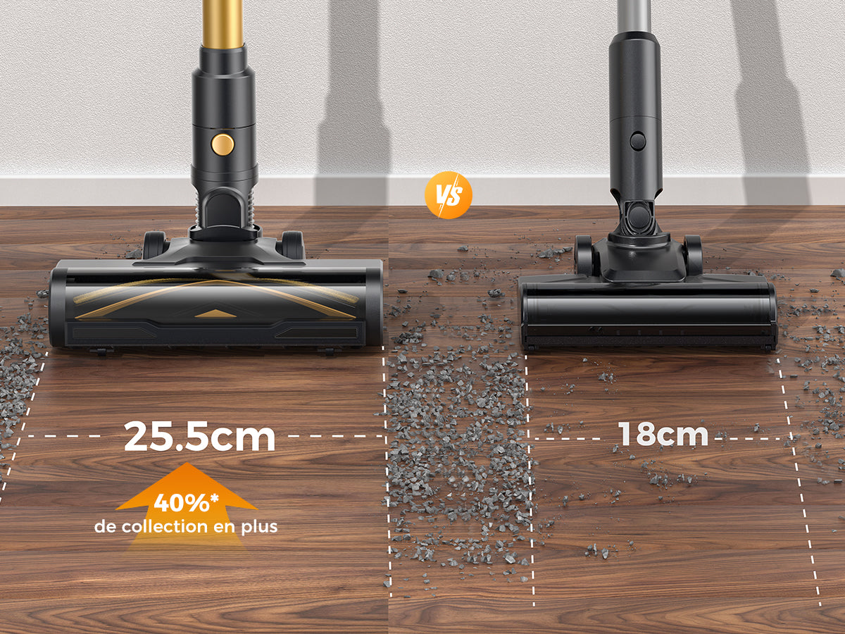La brosse extra-large de 25 cm couvre une plus grande surface, rendant le nettoyage plus rapide avec moins de passages.