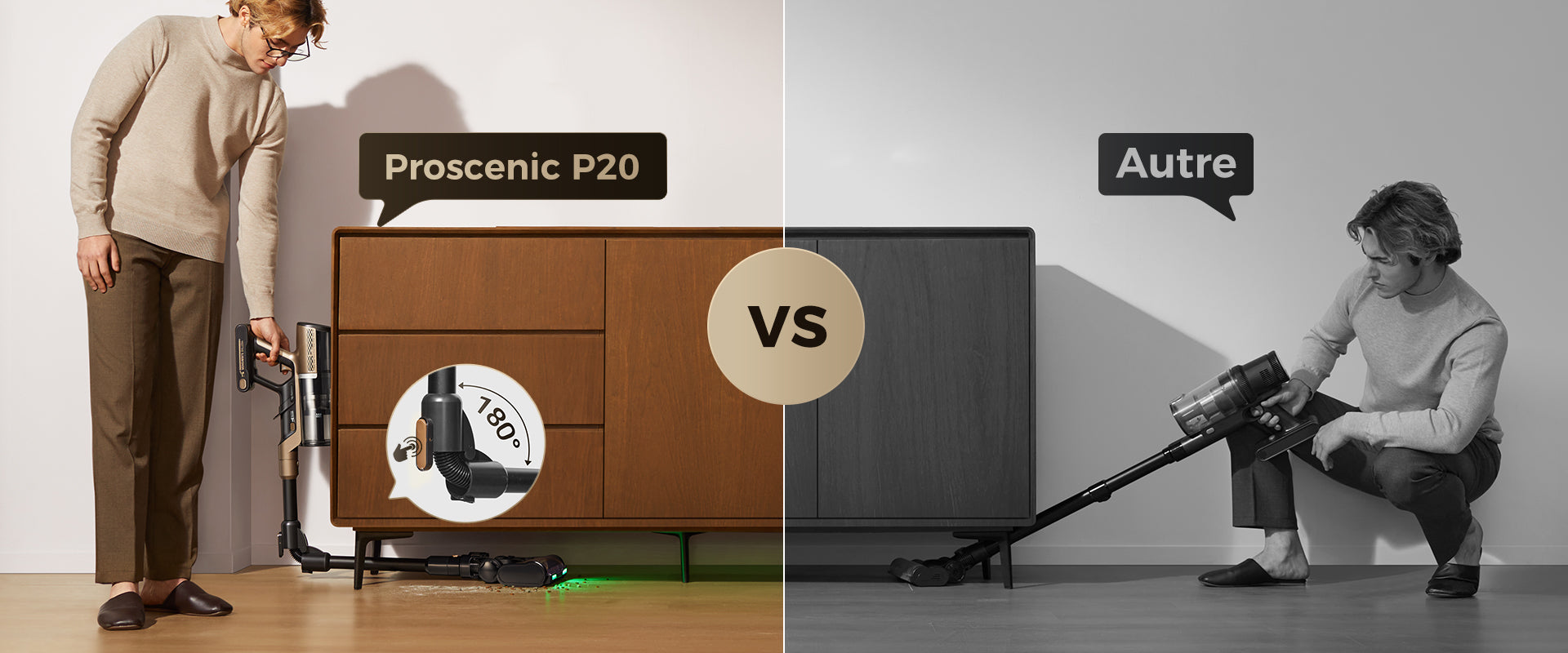 Le tube pliable à 180° permet à P20 OnePass de passer facilement sous les canapés et les lits, atteignant la poussière cachée sans avoir à s’accroupir.
