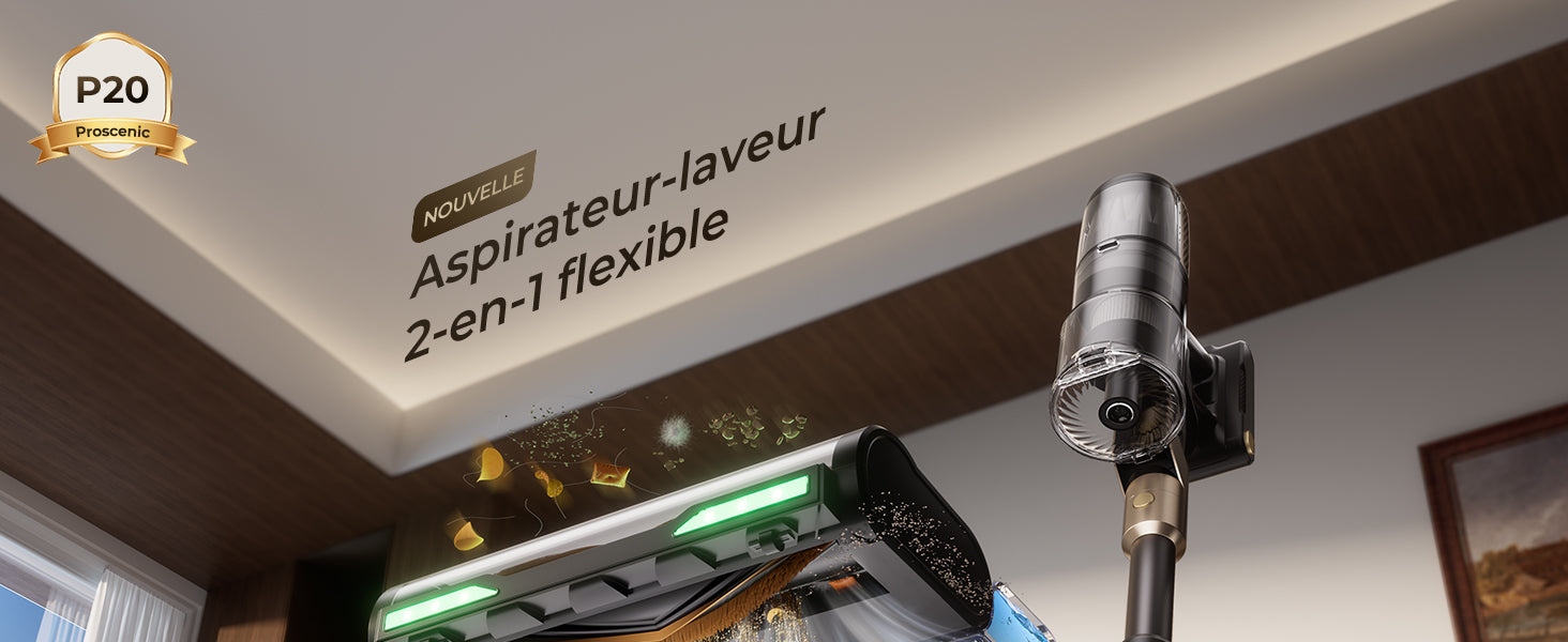 Le P20 OnePass est équipé d’un moteur de 680W, offrant une puissance d’aspiration de 70kPa pour éliminer poussière, saleté et débris, garantissant ainsi une propreté parfaite.