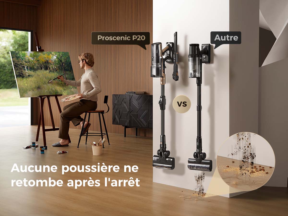 Lors de l’arrêt, P20 OnePass nettoie automatiquement les résidus présents dans le conduit d’air, empêchant la poussière de retomber et assurant un flux d’air propre.