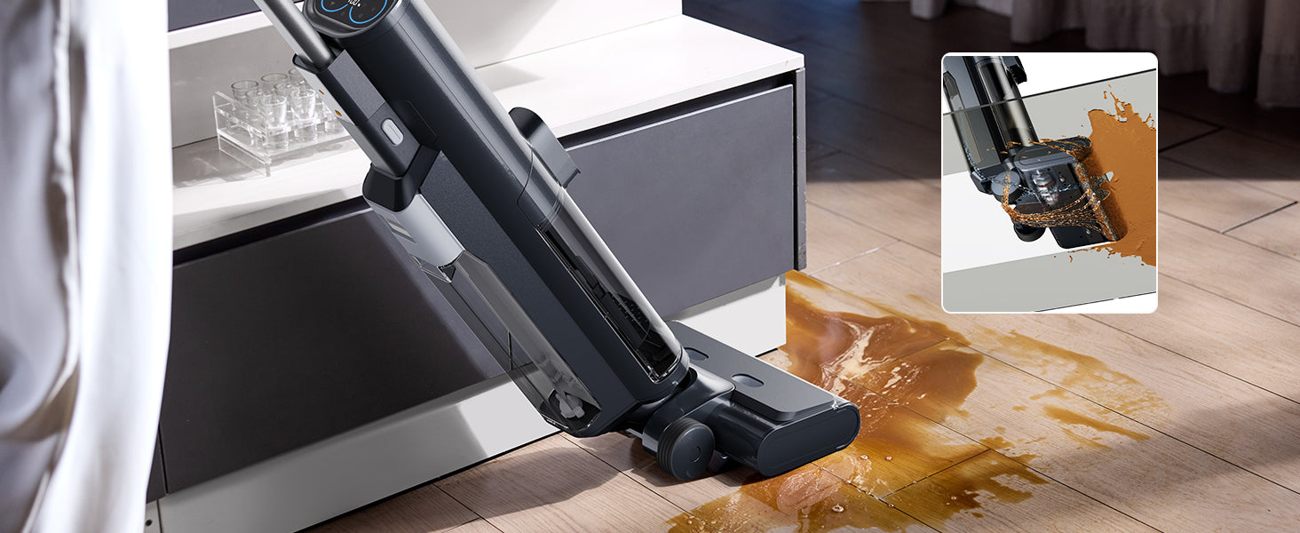 Le F20A combine aspiration, lavage et nettoyage dans un seul appareil. Grâce à sa technologie de lavage à l’eau propre, son rouleau de 380 tr/min et sa puissante aspiration, il élimine facilement même les taches tenaces comme l’huile ou les sauces sur les sols durs.