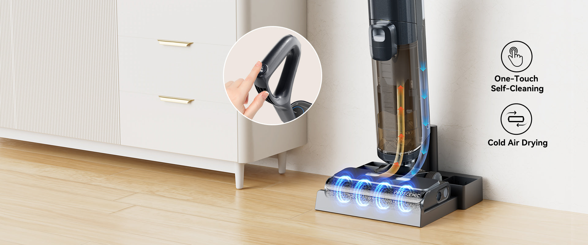 En appuyant sur un seul bouton, le rouleau et le tube interne sont nettoyés en profondeur. Ensuite, le séchage par centrifugation élimine l’humidité du rouleau, le gardant hygiénique, frais et sans mauvaises odeurs.